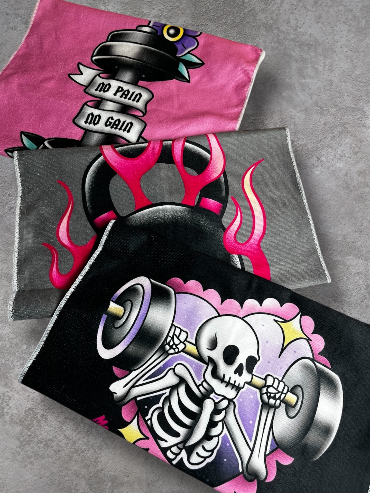 Gym Towels 12,90 € Discount of %. Share Design No Pain No Gain Moshpit Skull Pit Flames Buy Contact Moshpit Fitness, in its simplest form. Made for those who want to carry the energy of the pit into every workout. Type: Training / fitness towelSize: 66 cm x 45 cmMaterial: Quick-dry microfiber Soft, lightweight, and compact — easy to carry from session to session. Designed for performance:– Fast drying between workouts– Ideal for gym, functional training, or everyday use Features an exclusive Moshpit Fitness design, produced in small batches. Note: This is a compact training towel. It is not intended to replace full-size bath towels.
