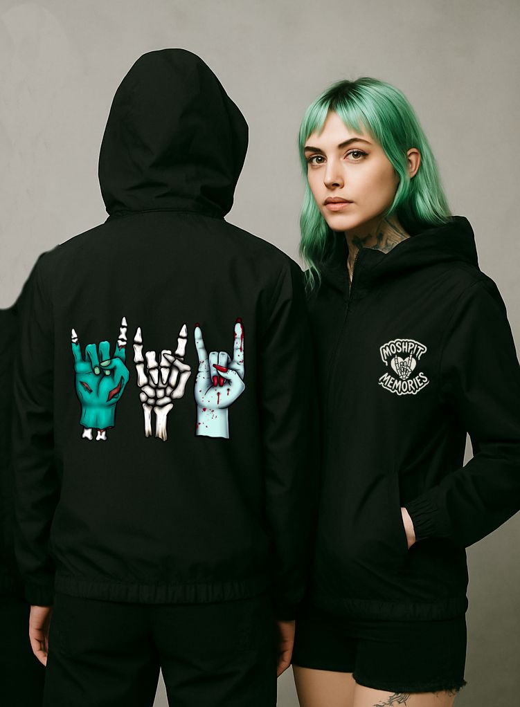 Rock Hands Windbreaker 35,00 € Discount of %. Share Size S M L XL Buy Contact Limited edition. Available while stock lasts. Unisex windbreaker jacket with a relaxed fit, perfect for layering. Made from a water-resistant, stain-repellent outer fabric, fully lined with satin for extra comfort. Features a front zip closure and two side pockets. Designed to be worn year-round — light on its own, or layered over winter pieces. Each piece is handmade to order, so production times may vary depending on current demand (check the notice at the top of the site). Care: machine wash up to 30°C. Stains can be easily wiped off with a damp cloth. Tags winderbreakerjacket Characteristics
