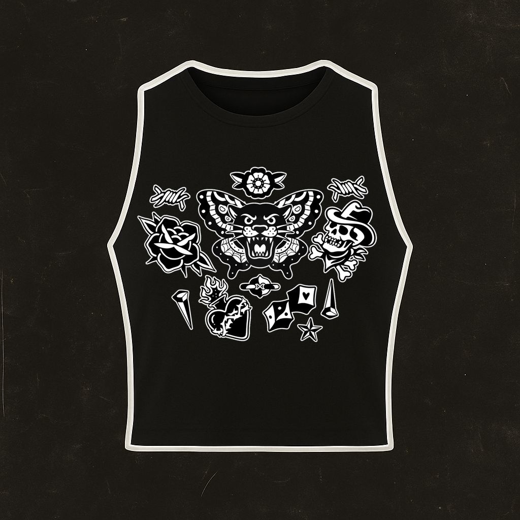 T-Shirt/Crop Top American Trad Tattoos 18,00 € Discount of %. Share Size S M L XL XXL Type Girly Unisex Crop Top Buy Contact Limited edition. Not for everyone. Available in Girly (fitted) or Unisex (oversized) fit — choose your vibe. Made from 100% cotton with a high-quality DTF print. Each piece is handmade to order, so production times may vary depending on current demand (check the notice at the top of the site). Tags t-shirttattoo Characteristics